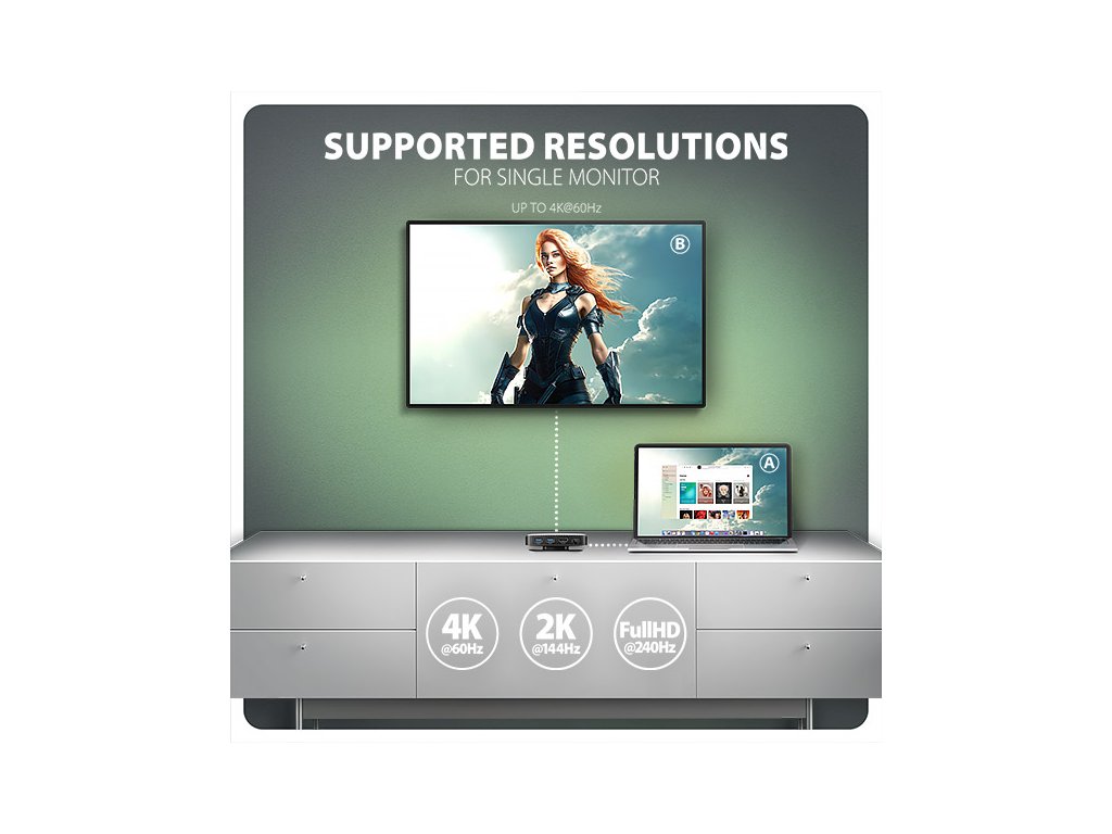 • 1 monitor - až 4K/60Hz Ultra HD, 2K/144Hz Quad HD, 1080p/240Hz Full HD
