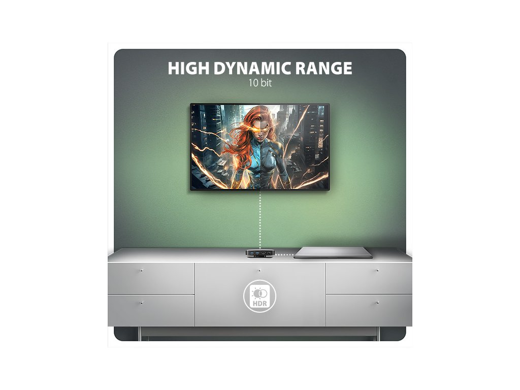 • Podpora HDR (High dynamic range, 10 bit support) - realistická reprodukce světlých a tmavých detailů.