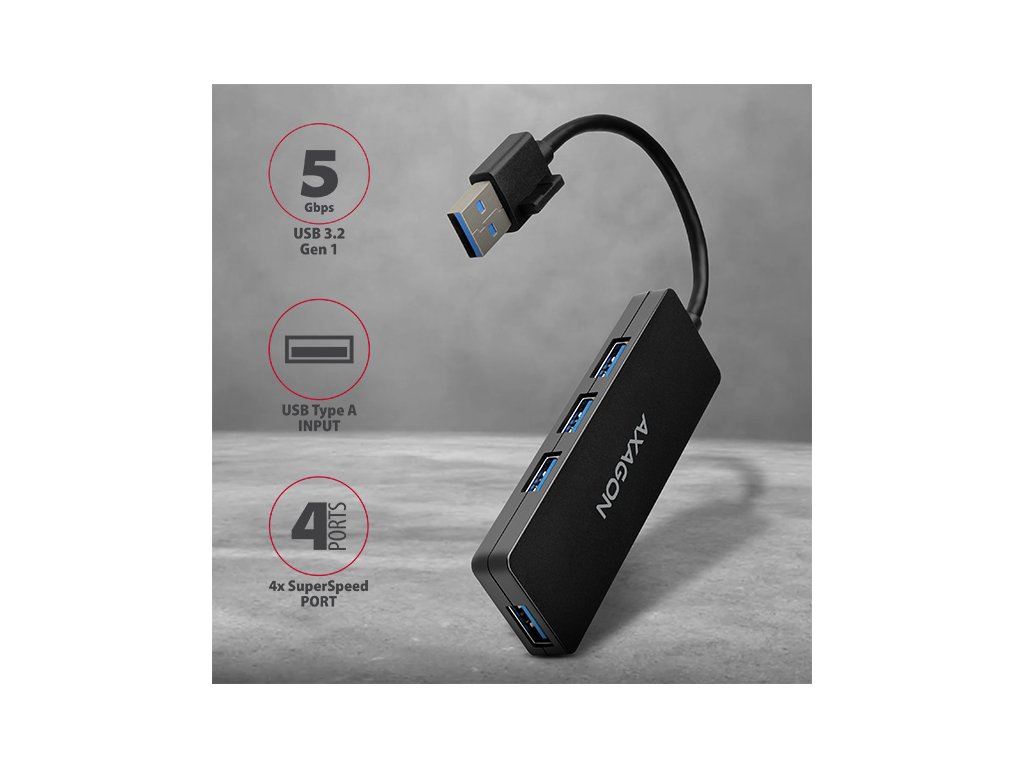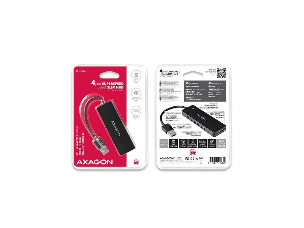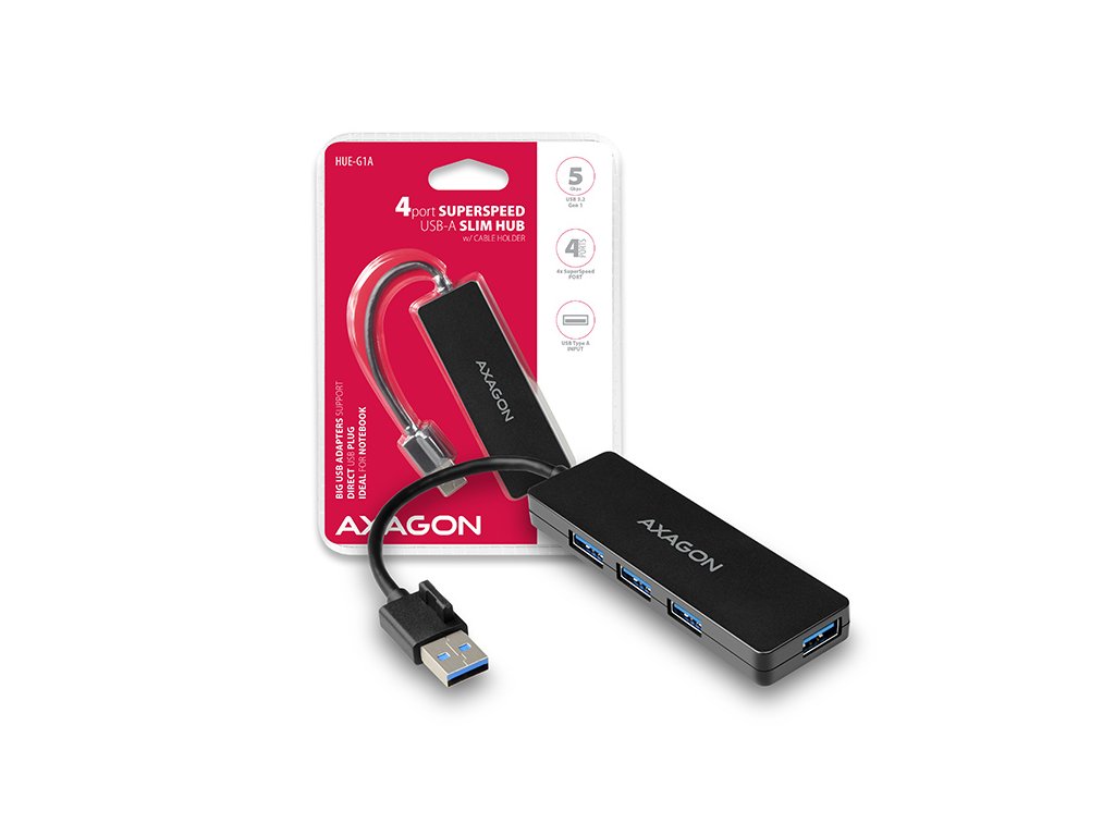 AXAGON HUE-G1A, 4x USB 3.2 Gen 1 SLIM hub, kabel Type-A 14cm napevno