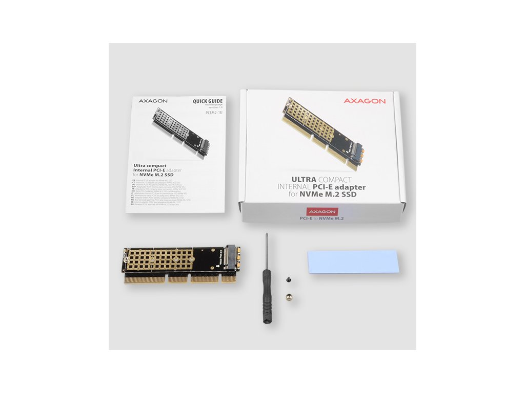 Interní adaptér AXAGON PCEM2-1U umožňuje připojení M.2 SSD disku do stolního počítače pomocí sběrnice PCI-Express.Promyšlený design a ultra kompaktní rozměry adaptéru dovolují snadné použití ve stolním počítači, který není vybaven M.2 slotem. Karta je také ideální pro rack 1U server a low profile skříně. Unikátní konstrukce umožňuje použití nejen v x16 ale i v x4 a x8 slotech.