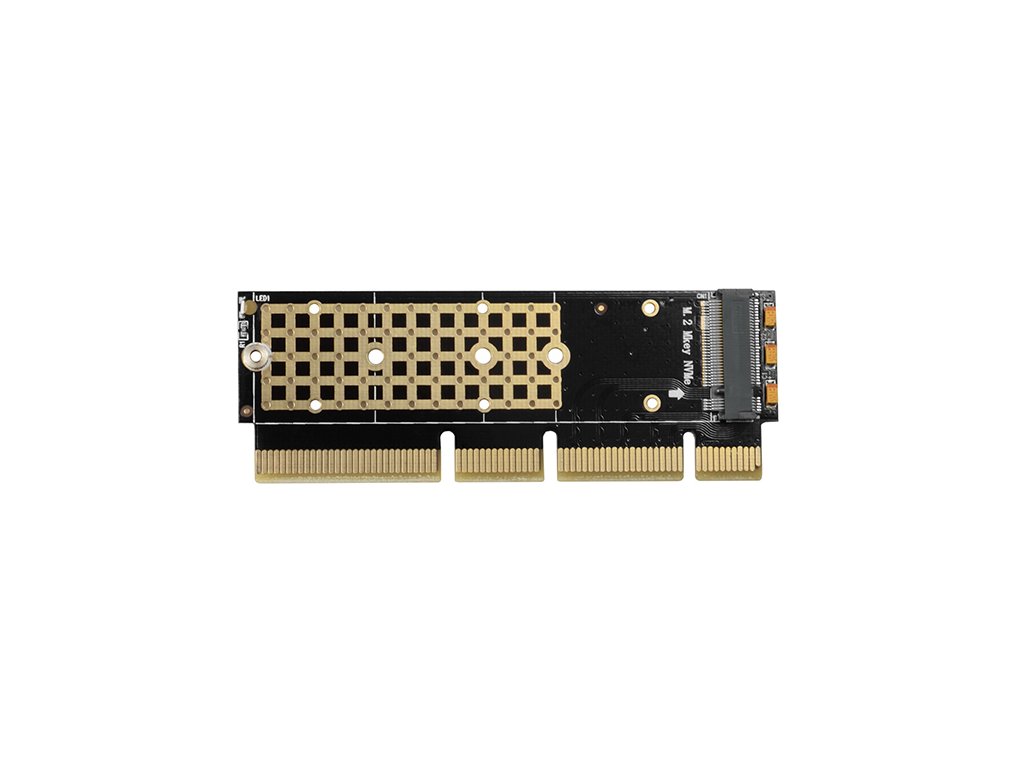 Adaptér podporuje použití NVMe (PCI-Express) M.2 SSD disků, jednostranných i oboustranných. Redukce nemá omezení kapacity SSD disků a lze použít M.2 karty až do rozměru 22x80 mm. Díky rozhraní PCI-Express 3.0 4-lane je možno dosáhnout rychlostí až 8GBps.