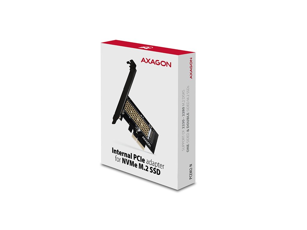 Interní adaptér AXAGON PCEM2-N umožňuje připojení M.2 SSD disku do stolního počítače pomocí sběrnice PCI-Express. Kvalitní zpracování, kompaktní rozměry a promyšlený design dělají z adaptéru ideální volbu pro upgrade stolního počítače, který není vybaven M.2 slotem.Adaptér podporuje použití NVMe (PCI-Express) M.2 SSD disků, jednostranných i oboustranných. Redukce nemá omezení kapacity SSD disků a lze použít M.2 karty až do rozměru 22x80 mm.