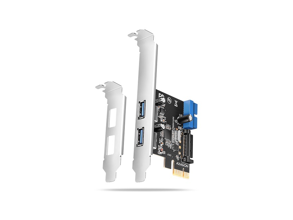 PCI-Express karta AXAGON PCEU-232RS rozšíří stolní počítač o čtyři USB 5Gbps porty. Karta je navržena pro rychlé datové přenosy rychlostí až 5 Gb/s.Dva USB-A porty jsou vyvedeny na záslepku. Můžete tak připojit dvě různá USB zařízení například tiskárny, klávesnice, čtečky karet, flashdisky, externí HDD atd. Další dva porty (ve formě interního USB 5Gbps 19pin konektoru) jsou integrovány na desce karty. Umožňují tak připojení interní USB čtečky nebo zapojení předních USB portů PC skříně.