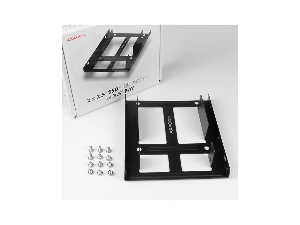 AXAGON RHD-225, kovový rámeček pro 2x 2.5" HDD/SSD do 3.5" pozice, montáž ventilátoru