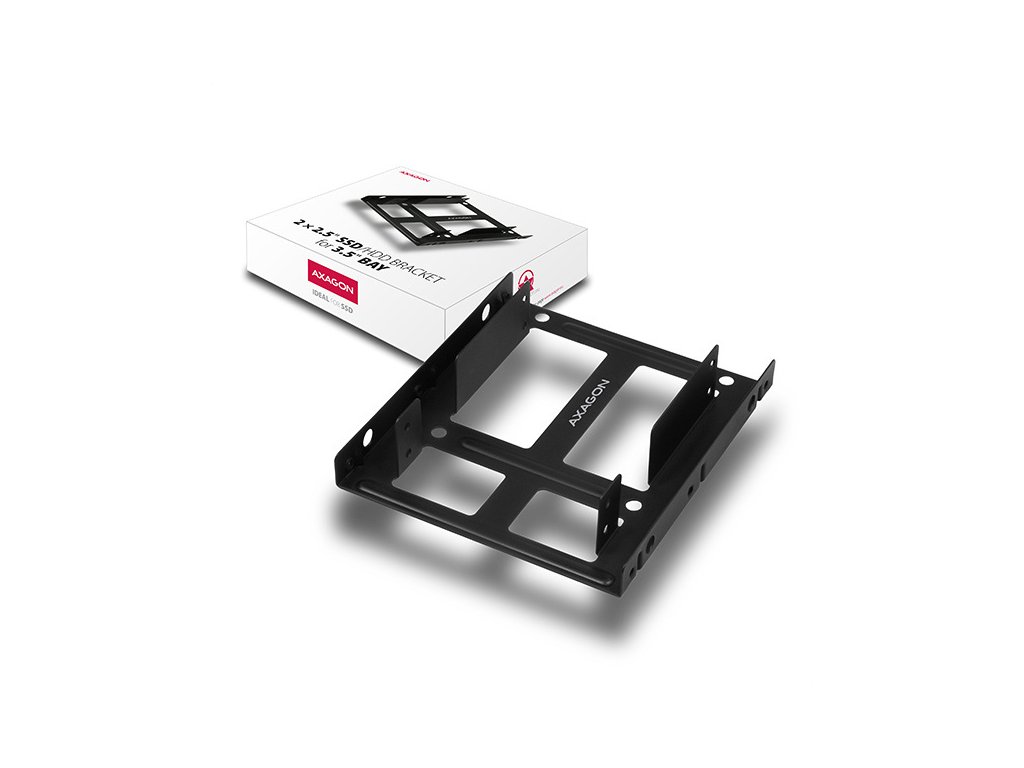 Kovový rámeček AXAGON RHD-225 umožňuje montáž dvou 2.5" pevných nebo SSD disků do jedné 3.5" pozice PC skříně. Redukce elegantně vyřeší například interní diskové pole v kompaktních počítačích. Lze použít standardní SSD disky 7 mm i pevné disky 9.5 mm.Přesné otvory pro montáž disku a montáž rámečku do skříně, zajistí jeho snadnou a bezproblémovou montáž. Pro posílení chlazení disků je rámeček připraven pro montáž dodatečného ventilátoru.