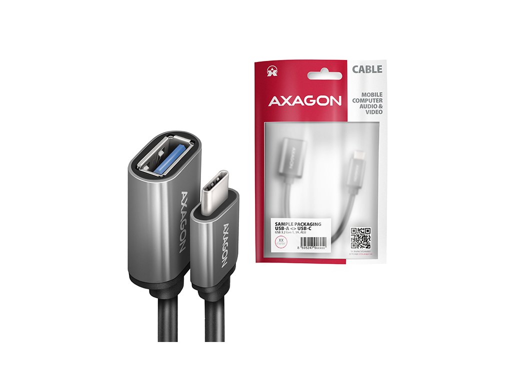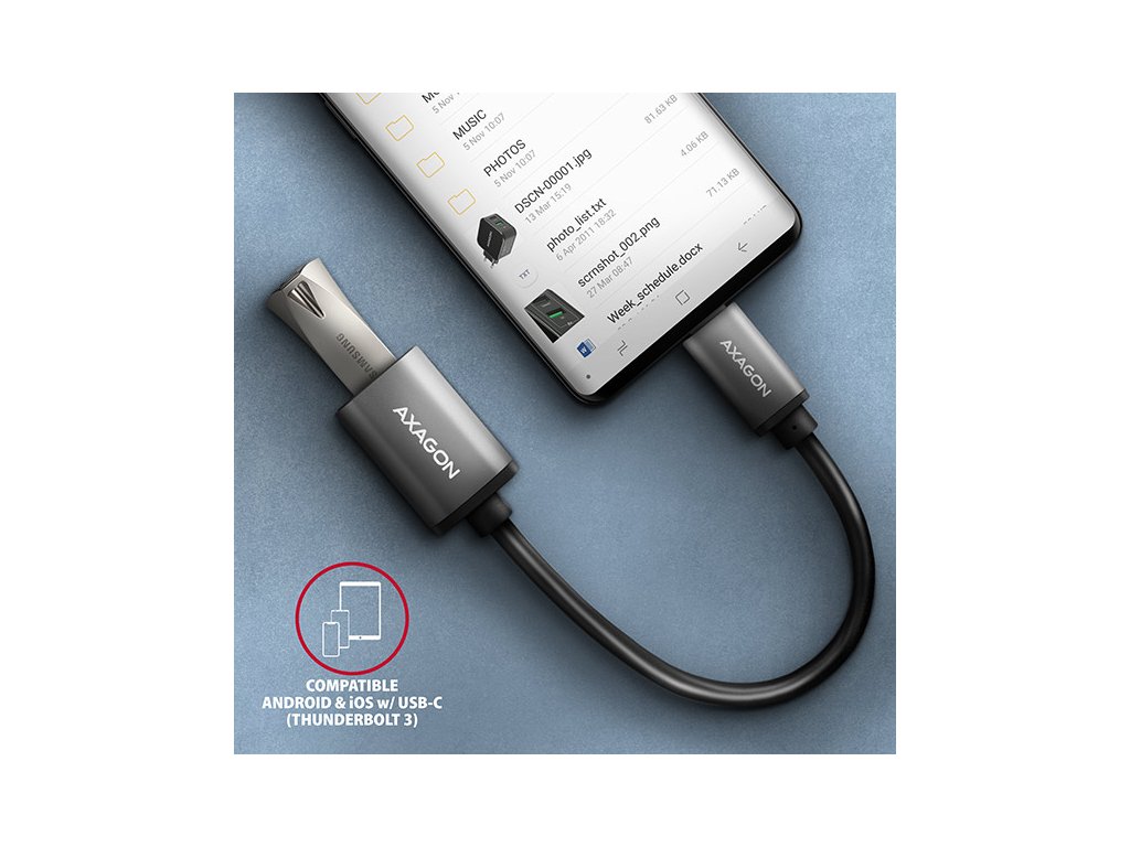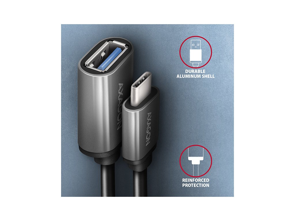 AXAGON RUCM-AFAC, kabelová redukce USB-C (M) <-> USB-A (F), 20cm, USB 3.2 Gen 1, 3A, ALU