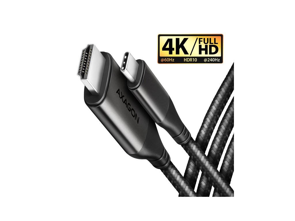 Moderní USB-C -> HDMI aktivní kabelová redukce AXAGON RVC-HI2MC pro připojení HDMI monitoru/TV/projektoru k notebooku nebo telefonu pomocí USB-C konektoru.Hardwarový převodník bez potřeby jakékoliv instalace zajistí kvalitní obraz až do rozlišení 4K/60Hz Ultra HD. Podporována jsou také oblíbená herní rozlišení WQHD 2560 x 1440 při 60, 120 a 144 Hz nebo FullHD 1920 x 1080 při 60, 100, 120, 144 a 240 Hz. Díky podpoře HDR (vysoce dynamický rozsah) si můžete bez omezení vychutnat výrazně rozšířený rozsah barev a kontrastů.