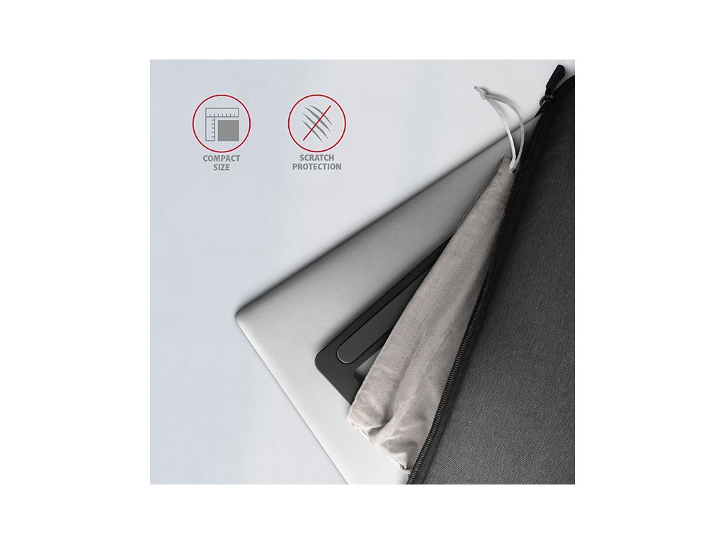 Stojan je možné složit do kompaktních rozměrů a pohodlně přenášet v přibaleném pouzdře v tašce spolu s laptopem. Elegantní design stojanu hezky doplní například váš pracovní stůl. Zároveň byl při jeho výrobě kladen důraz i na praktičnost.
