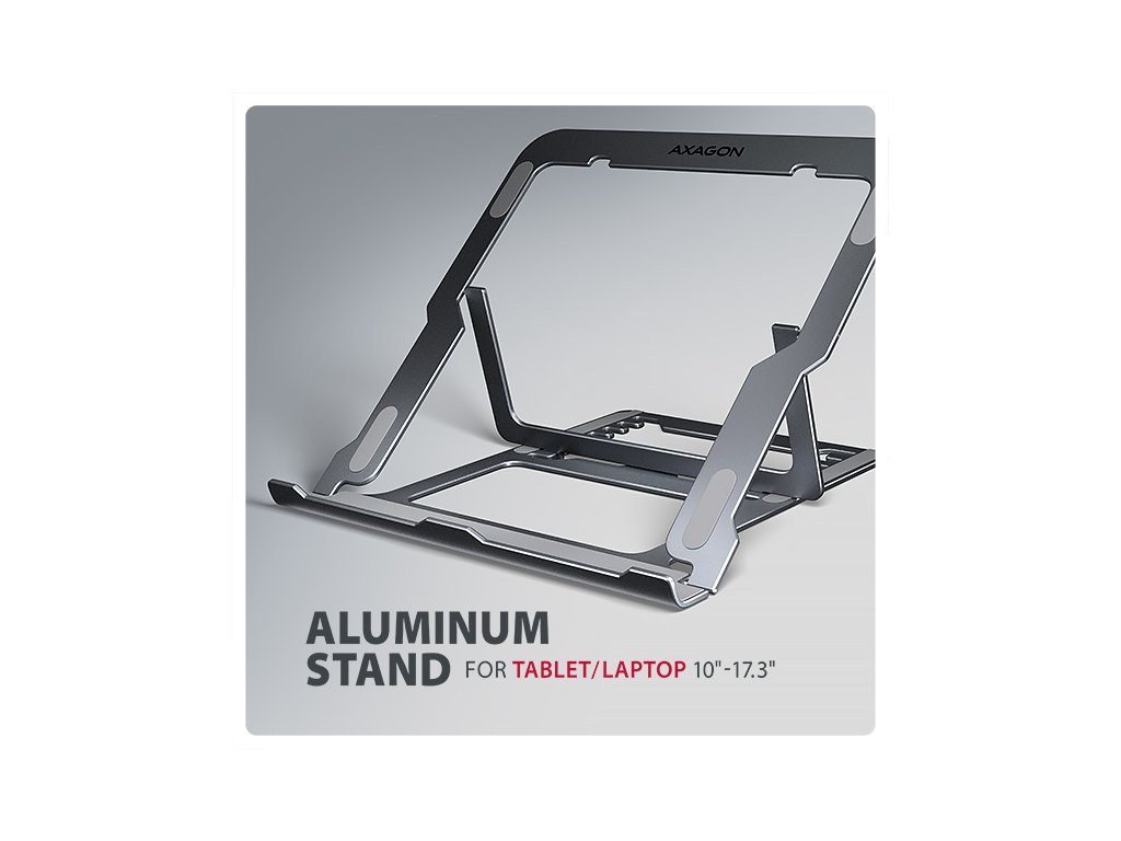 AXAGON STND-LAG, hliníkový stojan pro notebooky 10"-17.3", nastavitelná výška, šedý