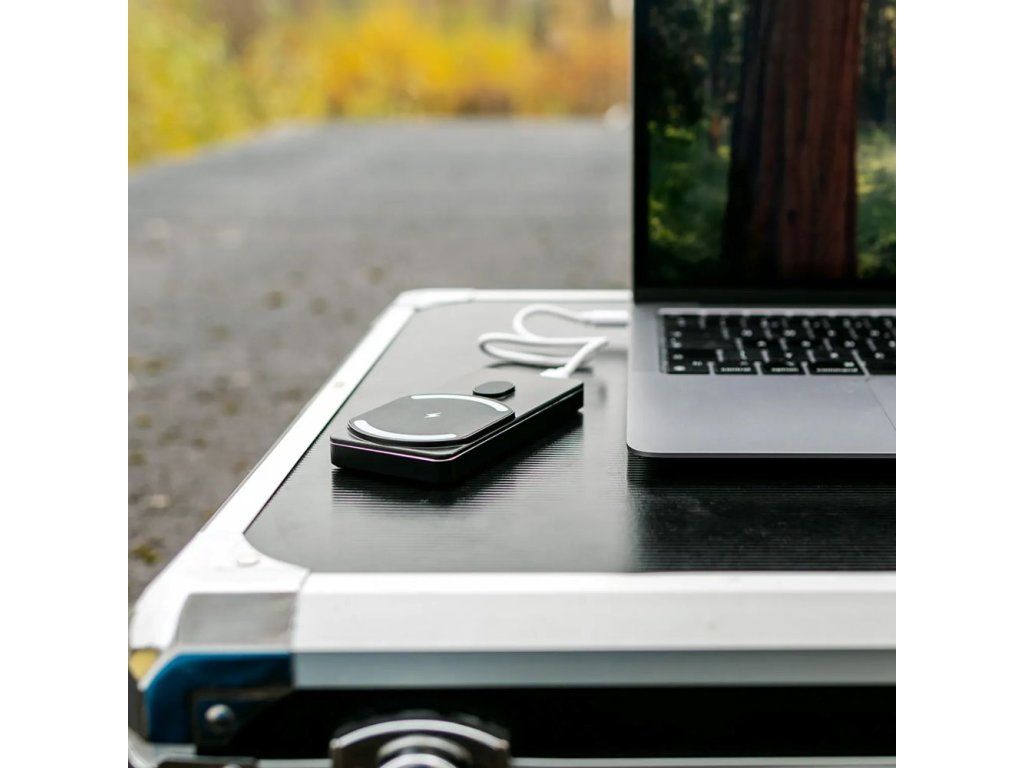 Powerbank vám umožní nabíjení dvou zařízení současně. Jedno za pomocí bezdrátové nabíjecí plochy, druhé pak pomocí USB-C výstupu, ke kterému jednoduše připojíte kabel.