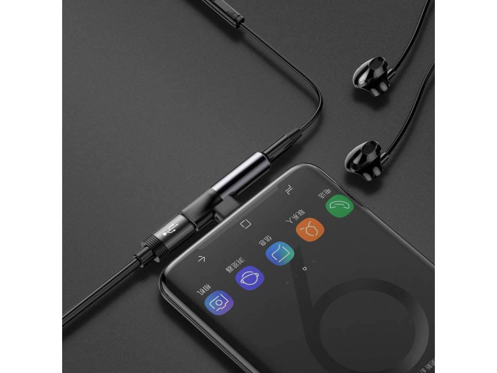 Tato jednoduchá redukce vám umožní poslouchat hudbu pomocí sluchátek s 3,5mm audio jack konektorem a současně nabíjet telefon.