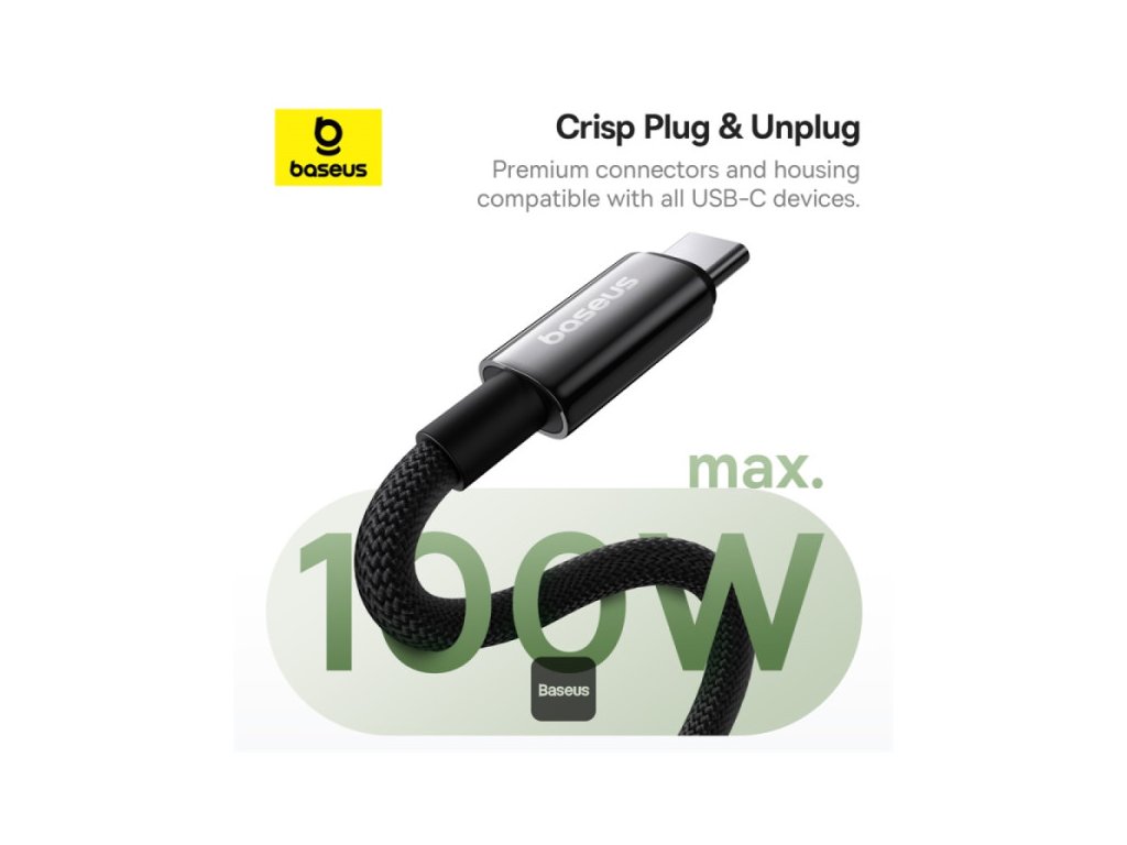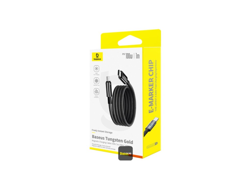 Baseus datový magnetický kabel Tungsten Gold USB-C/USB-C 1m 100W černý