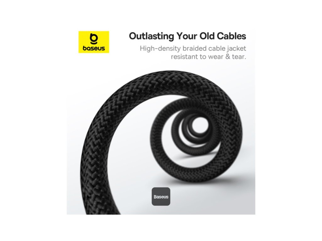 Baseus Tungsten Gold Magnetický kabel proti zamotání Type-C na Type-C, 100W PD Rychlé nabíjení, Vysokorychlostní přenos, Nylonové opletení, 5A, 1M – Černá