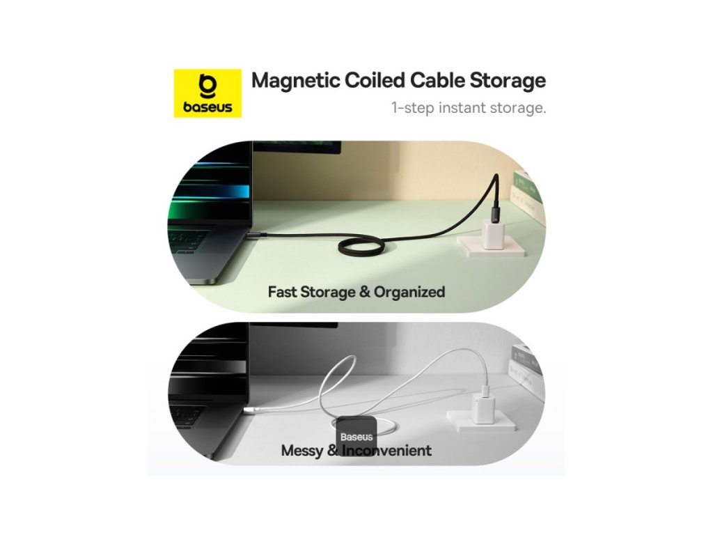 * Magnetický design proti zamotání: Automaticky se stáhne pro snadné skladování.