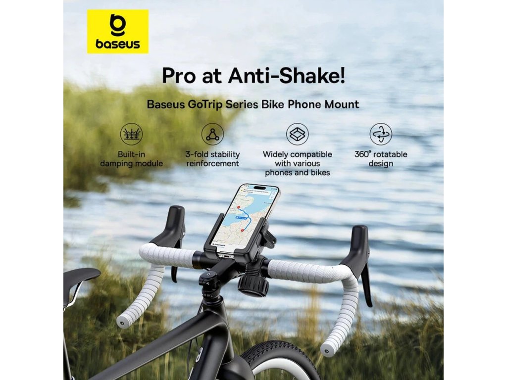Baseus Držák na kolo GoTrip černýUžijte si pohodlné a bezpečné používání svého telefonu během jízdy s držákem telefonu Baseus GoTrip pro kolo. Tento držák je navržen pro všechny cyklistické nadšence, kteří chtějí mít svůj telefon stále po ruce.
