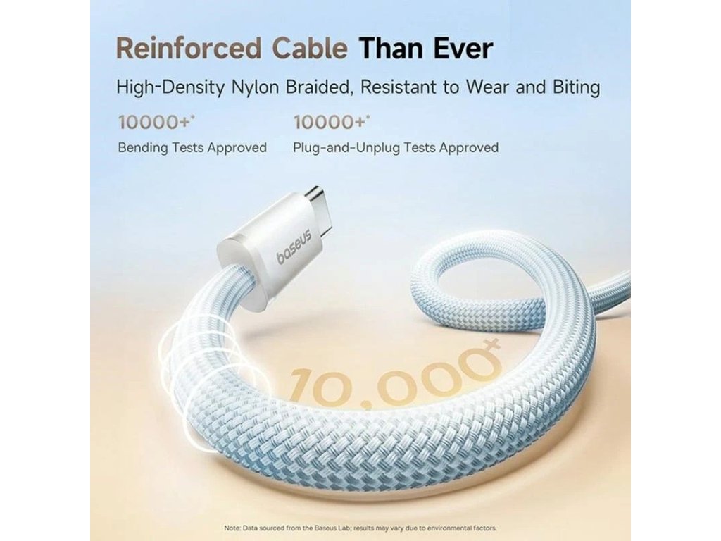 Kabel je chráněn pevným nylonovým opletem a je zesílený oproti běžným kabelům. Odolá více než 10 000 ohybům i 10 000 zapojením a odpojením. Konektory z hliníkové slitiny zajišťují pevné spojení a dlouhou životnost.