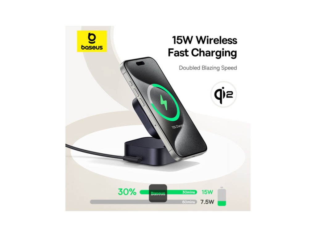 Baseus Magnetický bezdrátový nabíjecí stojánek PicoGo Series 2v1 Qi2 67W černý