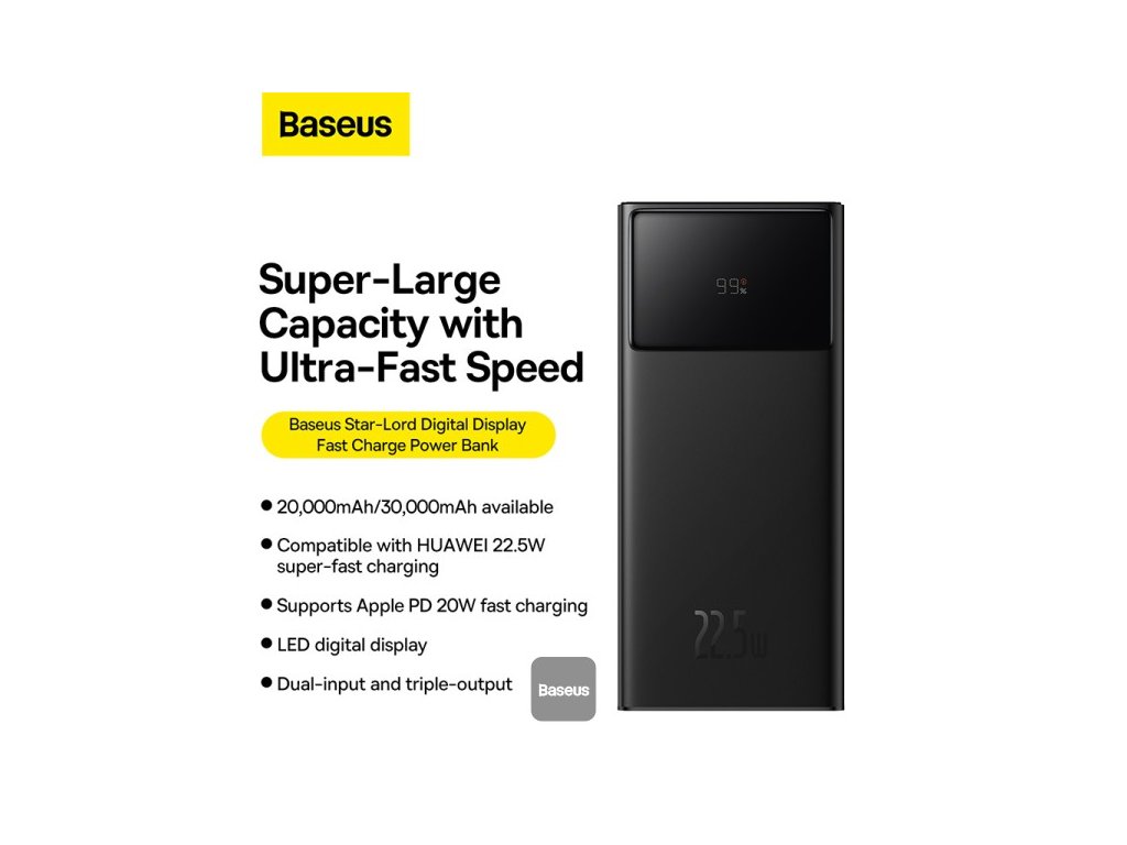 Baseus power banka Star-Lord 30000 mAh 22,5W USB/USB-C černá