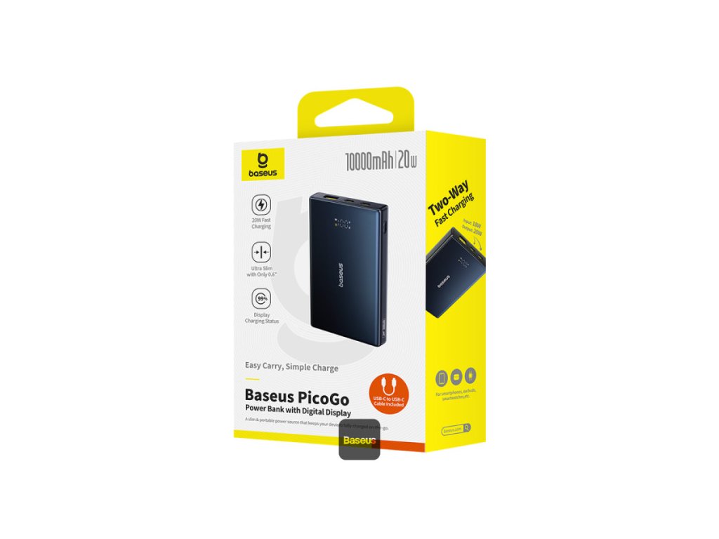 S Power Bank Baseus PicoGo 10000mAh nikdy nedopusťte, aby se vašemu zařízení vybila baterie. Tato powerbanka, navržená s elegantním, kapesním provedením, poskytuje spolehlivé napájení pro vaše každodenní nezbytnosti. Díky 20W výstupu pro rychlé nabíjení, digitálnímu displeji a několika nabíjecím portům je ideální pro potřeby nabíjení na cestách.