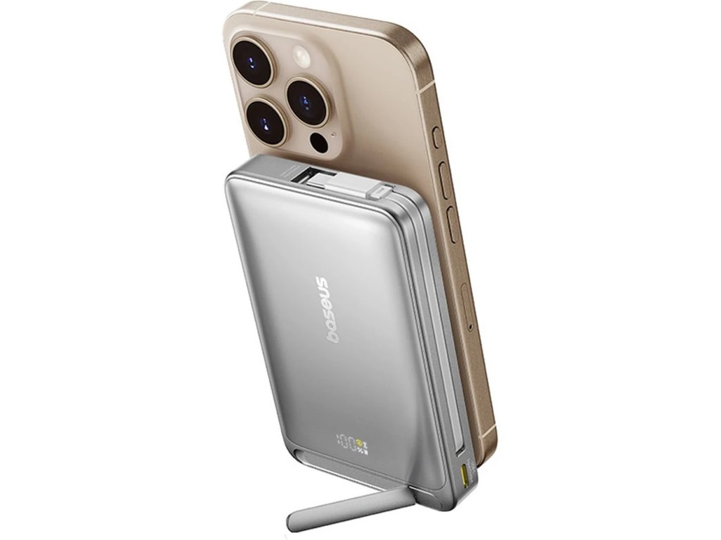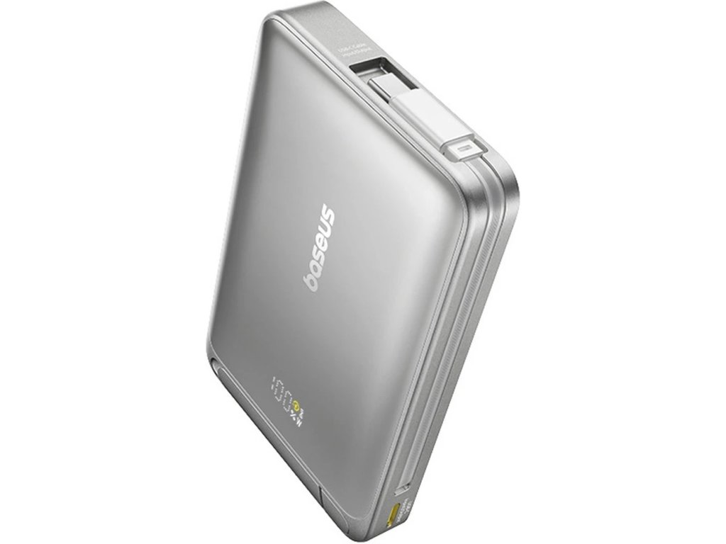 BASEUS Nomos Qi2 Power Bank 10000mAh 45W rychle nabíjecí kabelová bezdrátová nabíječka USB-C se stojánkem – šedá* Vyzkoušejte ultra rychlé 15W bezdrátové nabíjení s certifikací Qi2, které zajišťuje optimální účinnost nabíjení a kompatibilitu