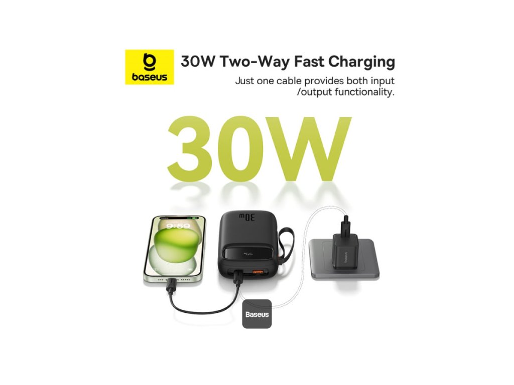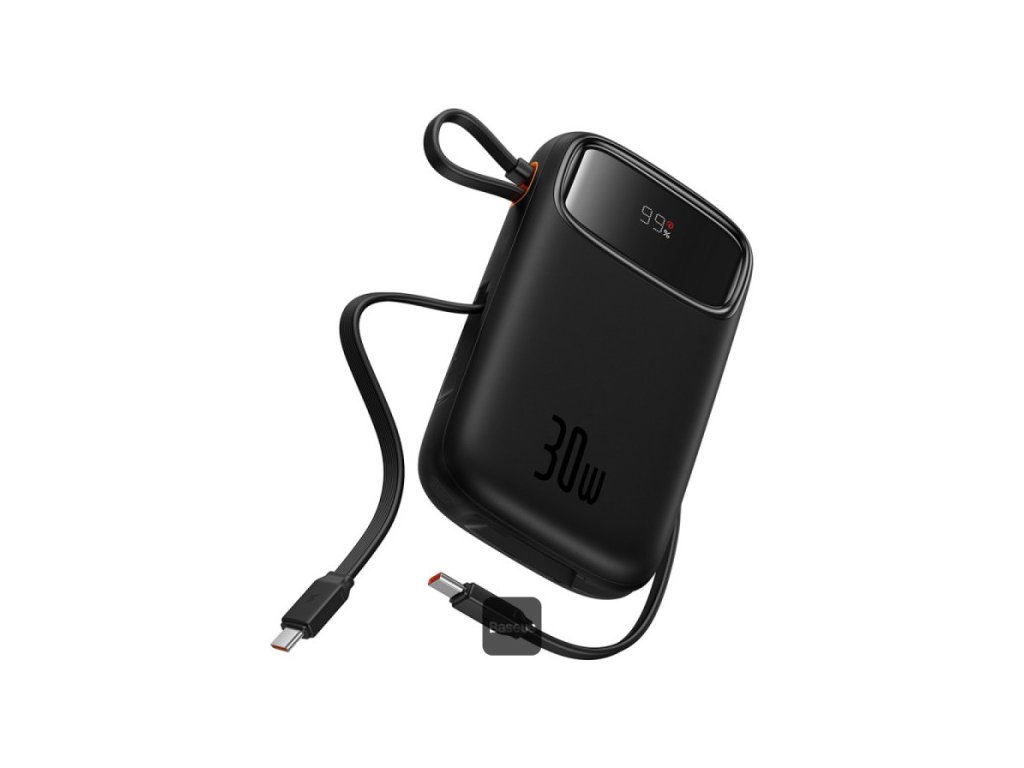 Baseus QPow2 20000mAh digitální displej Powerbanka s rychlým nabíjením 30W s vestavěným duálním kabelem typu C – černá