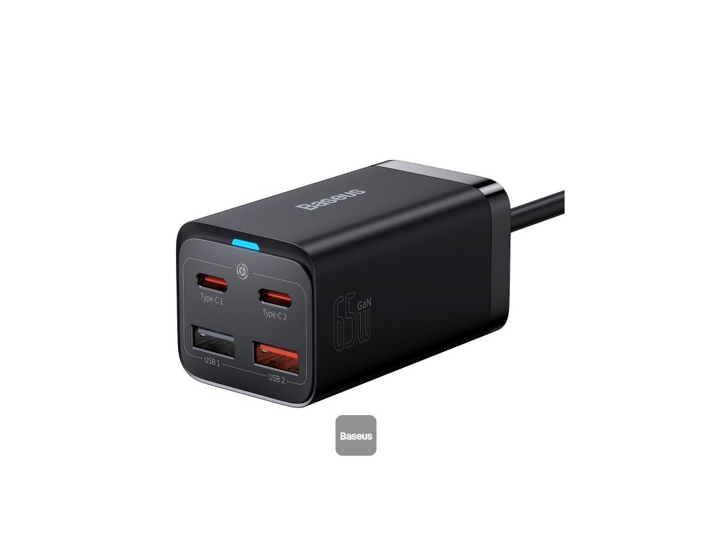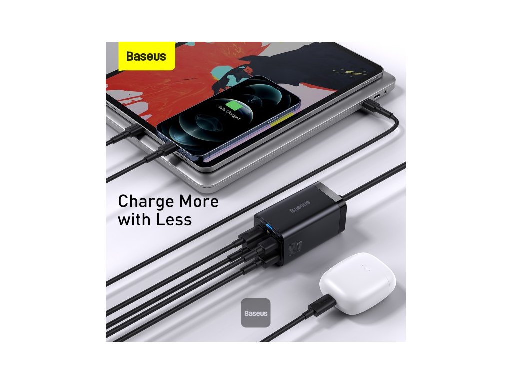 Baseus rychlonabíječka do sítě GaN3 Pro, 2x USB-C, 2x USB 65W černá