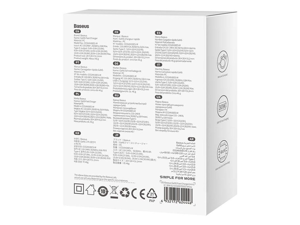 Baseus GaN5 30W mini síťová rychlonabíječka