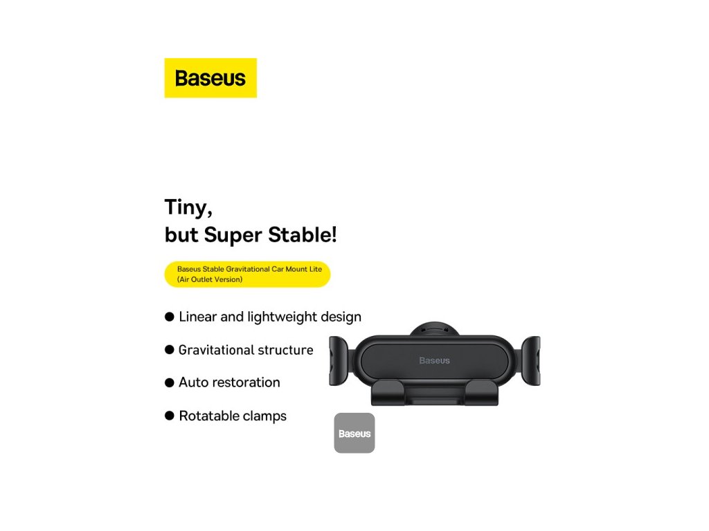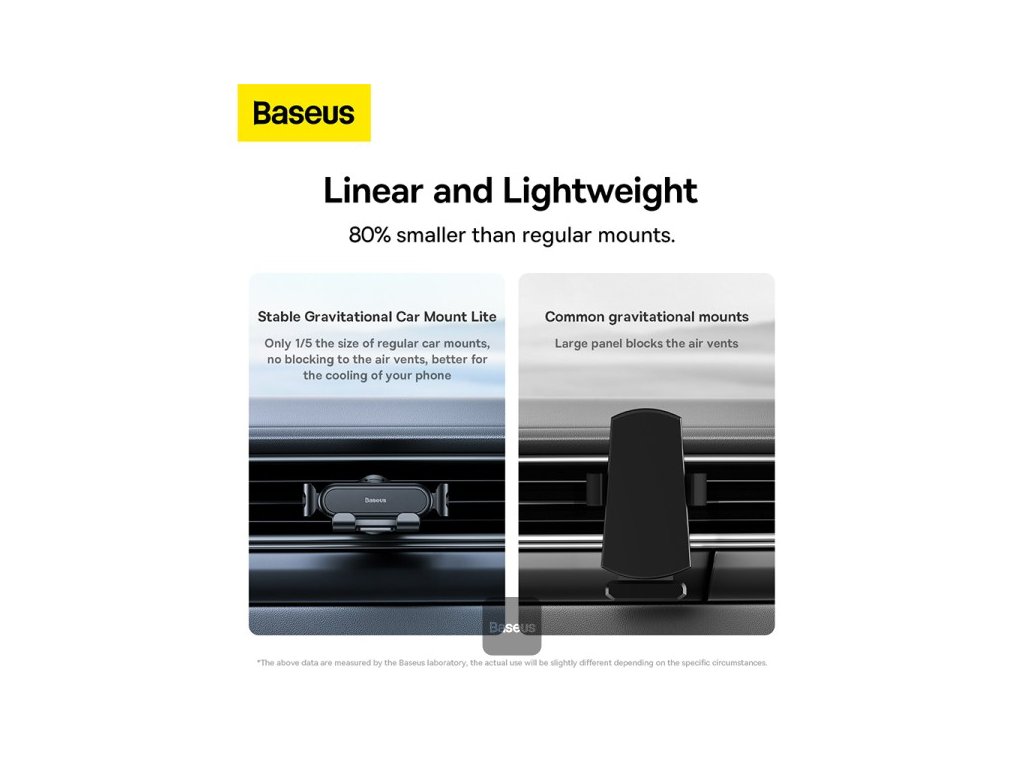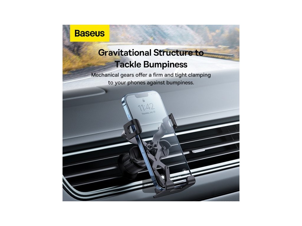 Držák telefonu do auta Baseus Gravity Air Vent (verze Air Outlet) - černý*Můžete jej ovládat jednou rukou - rukojeť má přesný gravitační mechanismus. Stačí položit telefon na panel držáku a čelisti se automaticky utáhnou