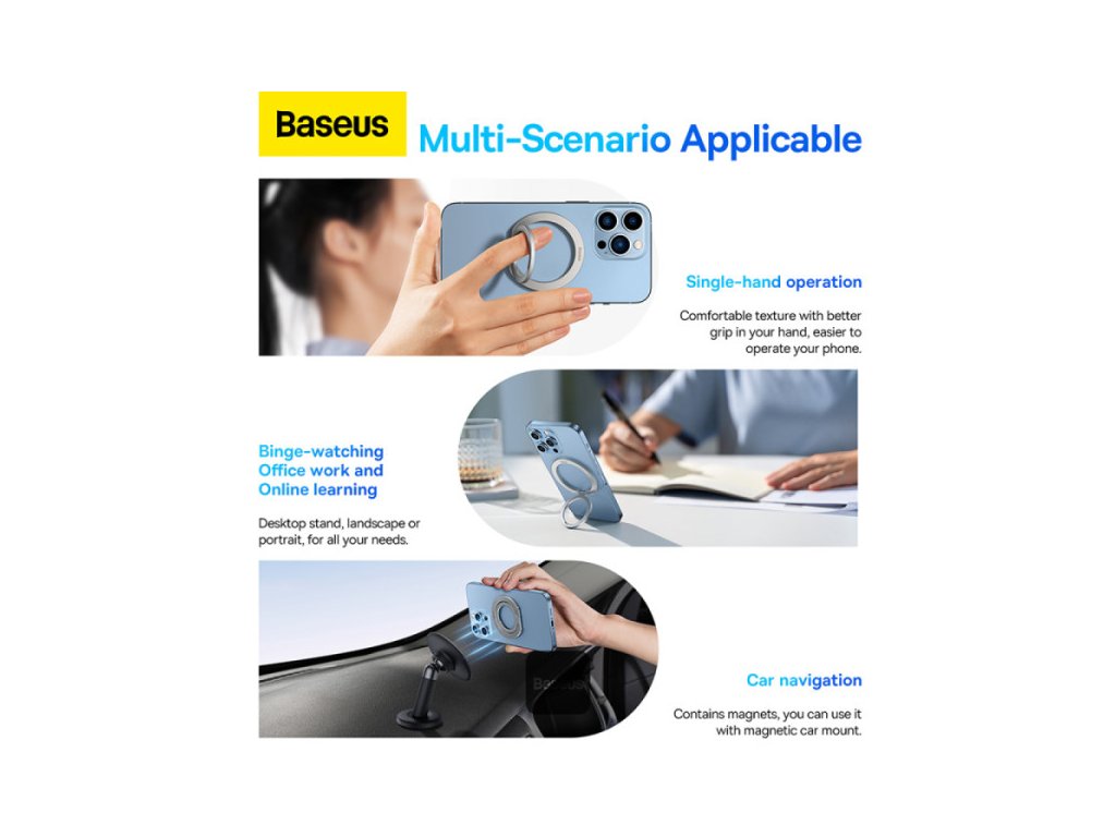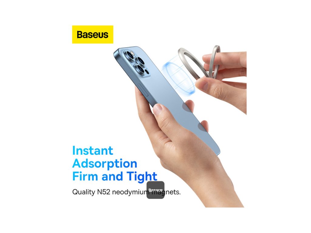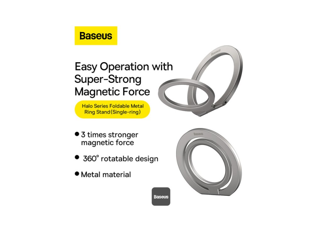 Magnetický (MagSafe) kroužek s prstýnkemUniverzální příslušenství známé a uznávané značky Baseus se bude hodit každému uživateli chytrého telefonu, který má MagSafe. Lehký a kompaktní magnetický držák umožňuje pohodlné používání zařízení za všech podmínek - stačí držák rozložit.