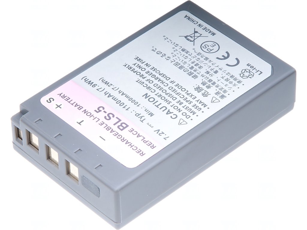 Baterie T6 Power Olympus BLS-5, PS-BLS5, 1100mAh, 7,9Wh, šedá