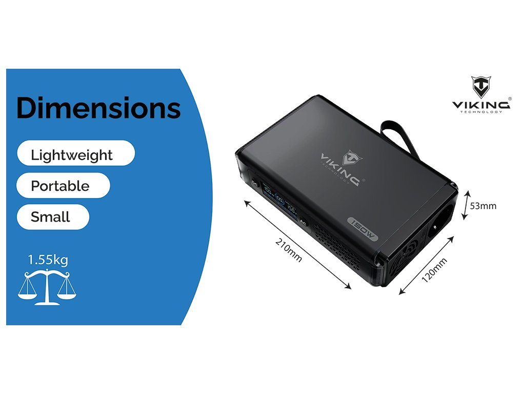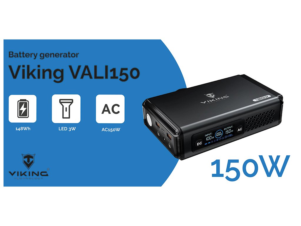 Kapacita baterie 148Wh • AC 230V výstup 150W max. • USB-C PD vstup/výstup 100W max. • 2 x USB-A výstup 18W max. • 2 x DC5521 výstup 72W max. • LED svítilna 3W • Funkce pass-through • váha 1.5 kgBateriový generátor Viking VALI150
