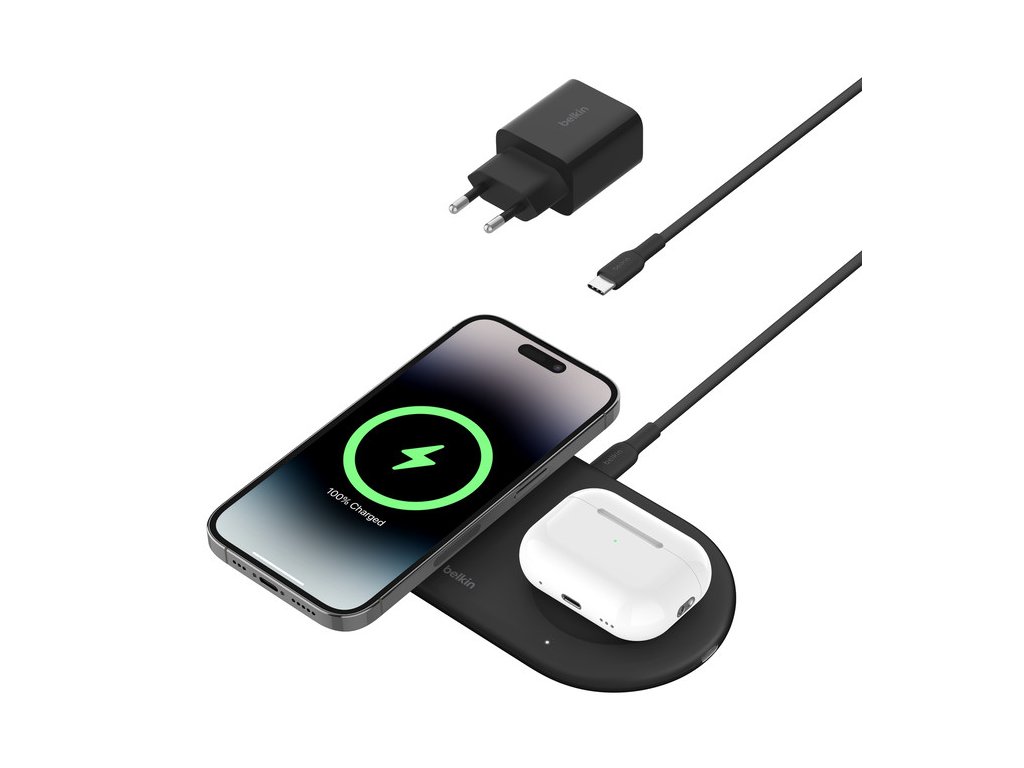 Belkin 2v1 Qi2 15W Magnetic Charging Pad, black