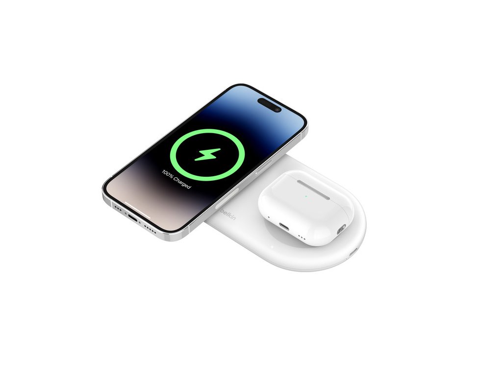 Belkin 2v1 Qi2 15W Magnetic Charging Pad, white