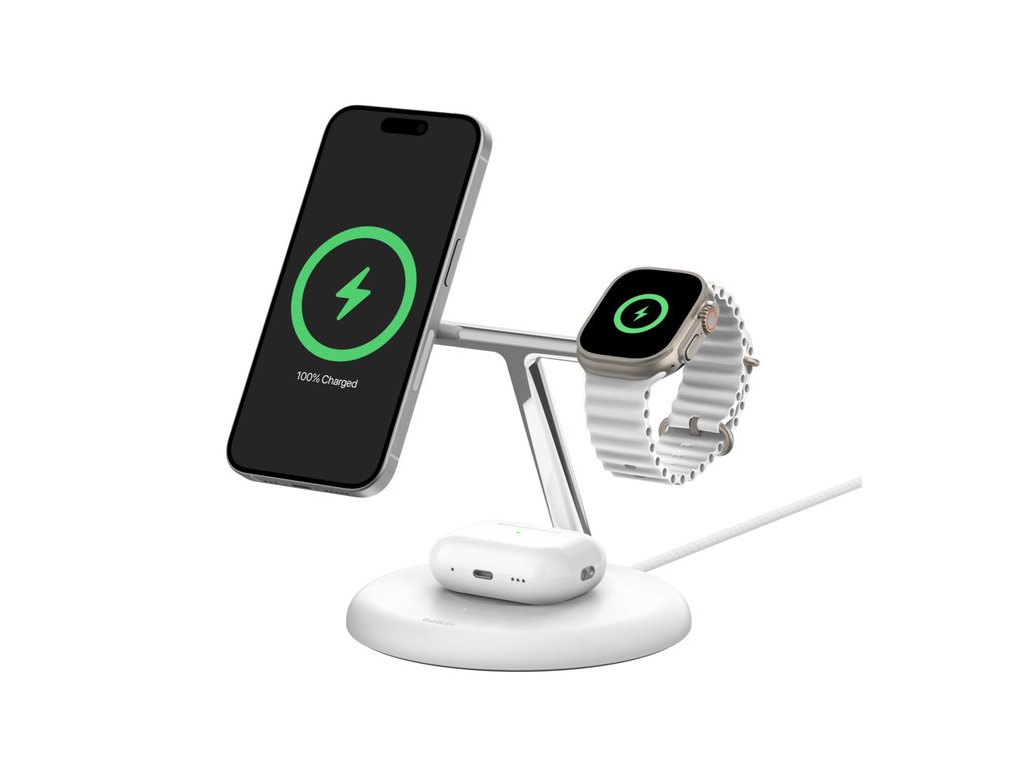 Belkin BOOST CHARGE PRO Qi2, 15W 3v1 magnetický stojan, bílý