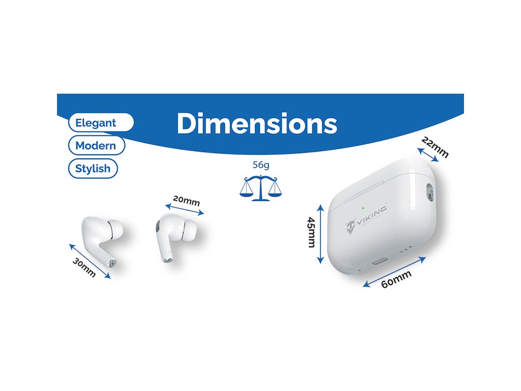 Bezdrátová sluchátka s mikrofonem • špunty • True Wireless • Bluetooth 5.2 • ANC (aktivní potlačení hluku) • hlasový asistent • přepínání skladeb • bezdrátové nabíjení nabíjecího pouzdra • frekvenční rozsah 20-20000 Hz • citlivost 113dB • výdrž baterie až 27h (4,5h sluchátka + 22,5h nabíjecí pouzdro)Bezdrátová Bluetooth sluchátka Viking AIR PLUS PRO-RT