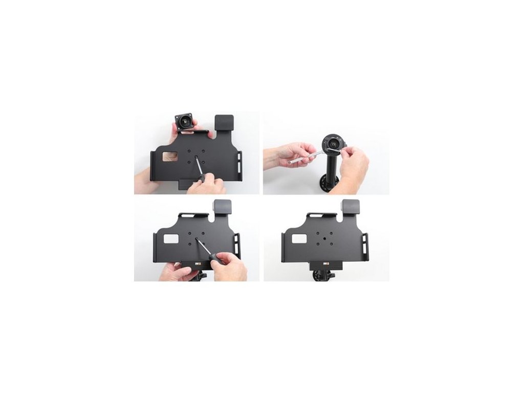 Brodit držák Samsung Galaxy Tab Active 3/Active2 v orig. obalu, jištění, skryté nabíjení, pogoDržák je velmi pevný, telefon se v něm neklepe a nevibruje. Držák má kloub, díky kterému může telefon kdykoliv jednoduše natočen na šířku nebo na výšku nebo naklopen. Držák se upevňuje na Brodit ProClip.