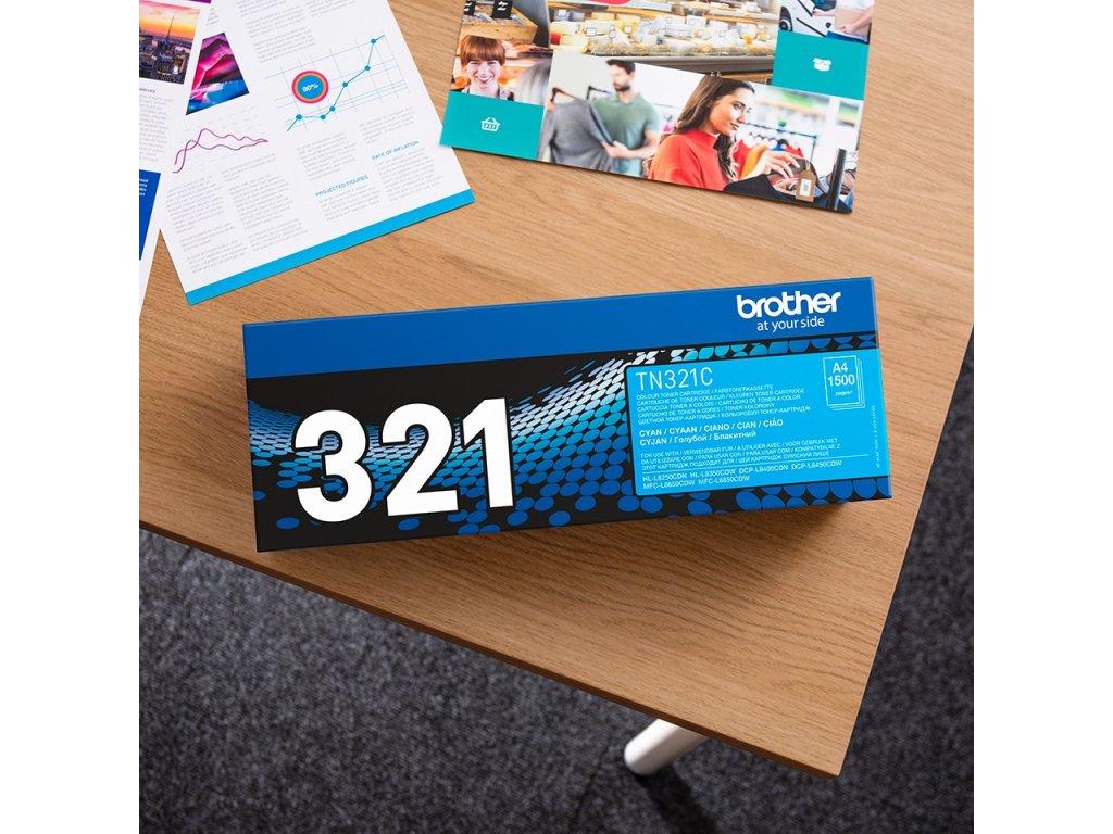 TN321C je tisková kazeta pro laserové tiskárny Brother DCP-L8400, DCP-L8450, HL-L8250, HL-L8350, MFC-L8650, MFC-L8850, které umožňují pohodlný tisk především dokumentů do formátu A4. Samozřejmostí je vysoká tisková spolehlivost a především vysoce kvalitní a ekonomický tisk.Pro tento toner azurové barvy se udává výdrž až cca 1500 stránek při 5% pokrytí.