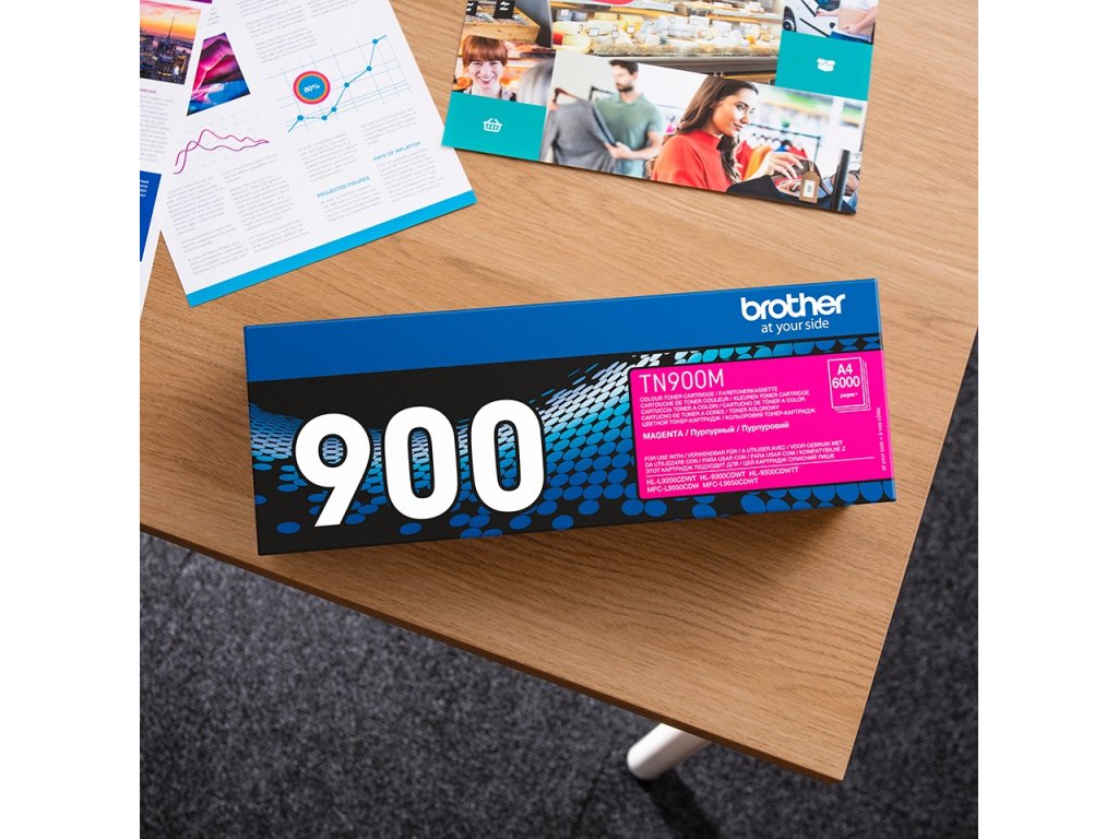 Originální purpurová tonerová cartridge společnosti Brother s označením TN900M určená pro použití v laserovém zařízení tohoto výrobce MFC-L9550CDWT a HL-L9200CDWT.Výtěžnost toneru TN900M se pohybuje na hranici až 6000 stran při 5% pokrytí. Důvody proč používat originální příslušenství jsou již klasické jako u ostatních výrobců, zachování záruky na zařízení, prodloužení životnosti a udržení standardně vysoké kvality výtisků.