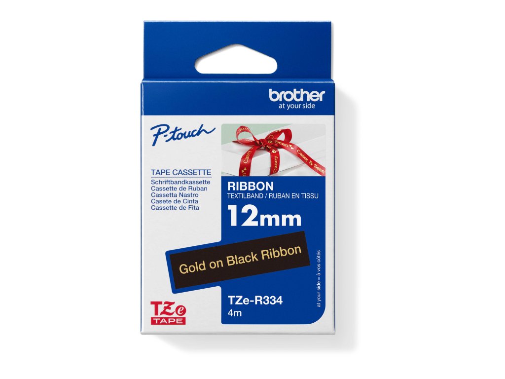 Originální pásková kazeta Brother TZe-R334 - zlatý tisk na černé, šířka 12 mmZapojte svou fantazii osobním přístupem k dárkům, kartám a řemeslným výrobkům pomocí originální pásky Brother TZe-R334. S TZe-R334 se můžete spolehnout na rychlý a spolehlivý výstup a na ostrý a profesionální standard tisku. Kompatibilní s tiskárnami štítků P-touch s logem TZ nebo TZe na krytu kazety s páskou.