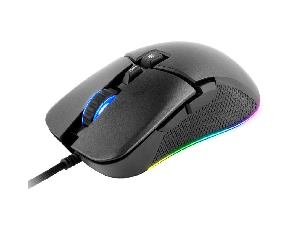 Herní myš C-TECH Dawn Vás na první pohled okouzlí svým elegantním tvarem a RGB podsvětlením. Myš disponuje optickým snímačem Sunplus 199 s maximálním rozlišením 6400DPI, které je možno pomocí tlačítka DPI měnit v 5 úrovních. Myš je vybavena 5 tlačítky, které vám poskytnou dokonalou kontrolu nad hrou. Další dvě tlačítka jsou pro změnu DPI a volbu RGB režimu podsvětlení. 5 RGB módy s 16.8 miliony barev oživí váš stůl nejen při hraní her, ale i při kancelářské práci. Myš C-tech Dawn je díky své ergonomii vhodná pro praváky a k počítači ji připojíte 1,5m opleteným kabelem s USB konektorem.Pro větší variabilitu lze na adrese https://shop.c-line.cz/files/C-tech_GM-24L.exe stáhnout přídavný software.