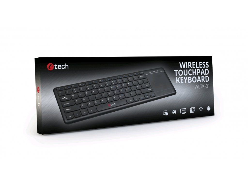 Bezdrátová klávesnice s touchpadem C-TECH WLTK-01 je ideálním řešením pro Váš obývací pokoj. Klávesnice je kompatibilní s většinou smartTV, Android, Chrome OS a Windows, čili Vám garantuje velmi pohodlnou obsluhu všech Vašich multimediálních zařízení. Klávesnice má plnou českou, i slovenskou lokalizaci. Pro ještě větsí pohodlí při užívání WLTK-01 Vám poslouží sada multimediálních kláves, multi-touch touchpad, kompaktní rozměry a malá hmotnost klávesnice.SPECIFIKACE