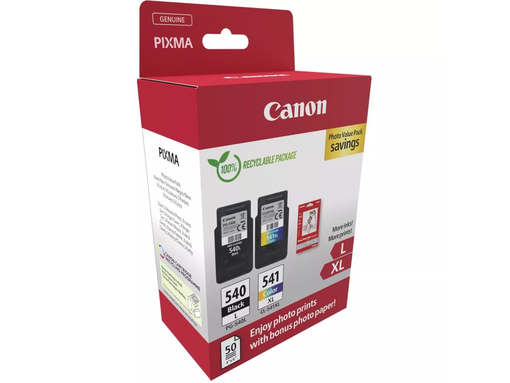 Canon PG-540L/CL-541XL Ink cartridge PVP, černá (black) + barevná (colour) + fotopapír, výtěžnost 300 str. černá, 400 str. barevnáKompatibilní s Pixma: