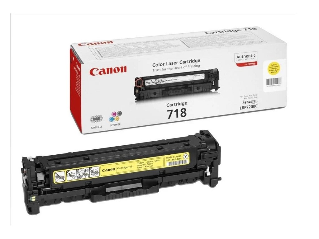 Kompatibilní s Canon i-SENSYS LBP7200Cdn.Toner Canon CRG-718 Yellow je určen pro vybrané barevné laserové tiskárny Canon. U tiskáren je zajištěn vysoce kvalitní výstup v rozlišení 600×600 dpi, jež lze zvýšit na ekvivalentní rozlišení 9600×600 dpi pomocí funkce automatického zdokonalení obrazu (AIR – Automatic Image Refinement). Toner CRG-718 yellow obsahuje žlutou barvu a udává se pro něj výdrž až cca 2900 stránek, při standardním 5% pokrytí.