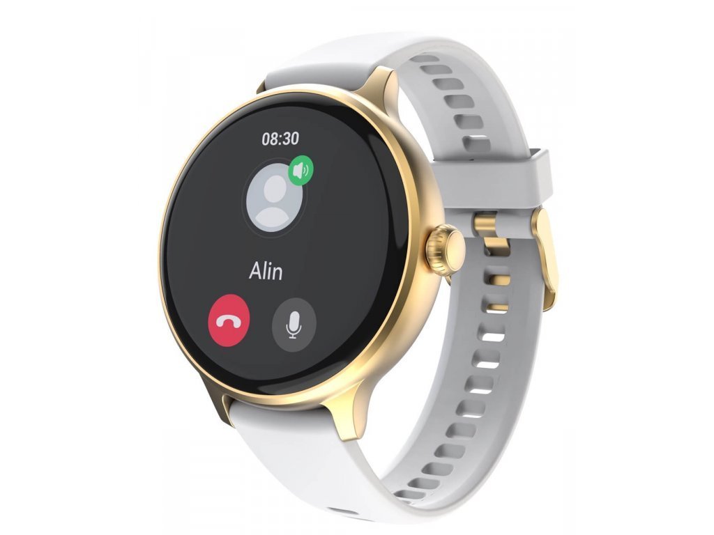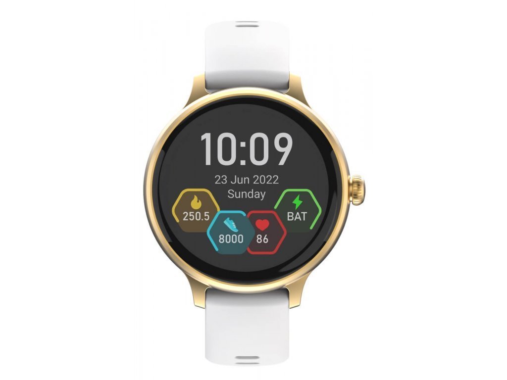 Všechna data vaší aktivityModerní fitness smart hodinky Carneo HERO mini HR+ v elegantním zlatém provedení disponují kulatým Super HD AMOLED barevným displejem. Umožňují měření srdečního tepu, stresu, BMI, ušlé vzdálenosti, monitorování spálených kalorií či kvality spánku. Jejich součástí je 230mAh baterie s výdrží 3 až 4 dny. Podle certifikace IP67 jsou odolné vůči vodě a prachu. Jsou kompatibilní s operačním systémem iOS a Android. Hodinky mají luxusní Milánský, kovový řemínek v ryze zlaté barvě, který lze vyměnit za silikonový řemínek v jiné barvě či kožený a tím pádem změnit hodinkám manažerský vzhled za sportovní. Vkusný, jednoduchý a luxusní design se snadno kombinuje k obleku či volnočasovému outfitu. Hodinky i aplikace jsou kompletně v češtině, takže si budete jistě spolu dobře rozumět. Součástí balení je také silikonový, bílý řemínek.