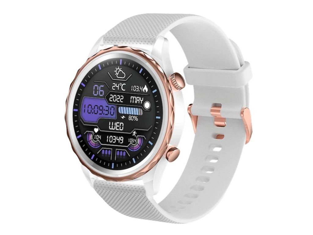 Chytré hodinky Carneo Queen HR+ rosegoldModerní, nadčasové fitness hodinky CARNEO Queen HR+ v bílém provedení se zlatorůžovou korunkou a bílou, na dotek velmi příjemnou, silikonovou páskou a barevným SUPER AMOLED displejem s vysokým jasem a funkcí trvalého zobrazení času monitorují vaši denní aktivitu, úroveň stresu, ale lze je spárovat s mobilním telefonem a upozornit vás na příchozí hovor nebo SMS. Hodinky umožňují telefonovat, aniž byste museli telefon vyndat z tašky, díky vestavěnému mikrofonu a reproduktoru až do vzdálenosti 10 m od telefonu. Jejich bezchybné kovové tělo s nadčasovými outdoorovými křivkami je tak návykové, že je po prvním nošení nebudete chtít sundat ze zápěstí. Mimořádně odolné minerální sklo chrání křišťálově čistou obrazovku před poškrábáním.
