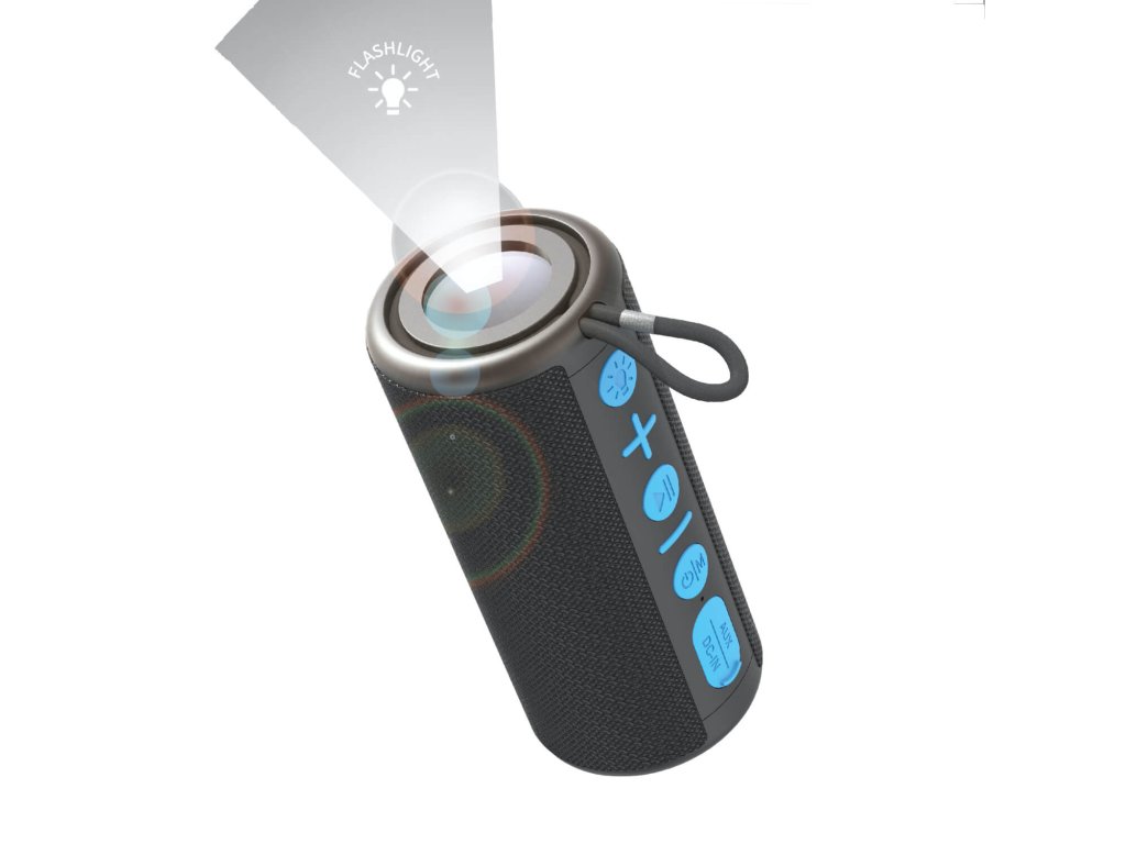 Žádné stanování se neobejde bez baterky, díky které v noci trefíte na WC či do dívčího stanu. Reproduktor je vybaven LED svítilnou, která Vám je kdykoli k dispozici.