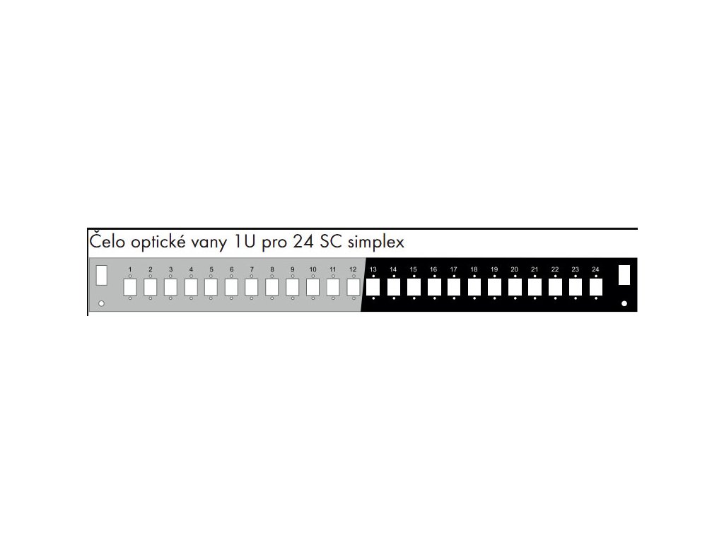 FP2-1U-24SCS-BČelo optické vany vhodné pro optickou vanu s výsuvnou policí uzavíratelná klapkami 1U FOS2-1U-B/G. Čelo SC simplex lze použít pro LC duplexní optické adaptéry.