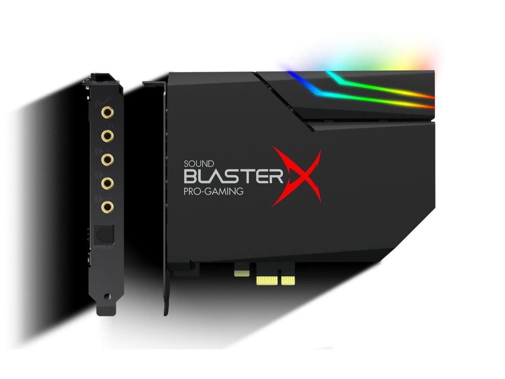 SOUND BLASTERX AE-5 PLUS herní zvuková karta PCI-e o vysokém rozlišení a převodník DAC s osvětlením RGB, funkcí Dolby Digital Live a kódováním DTS. Sound BlasterX AE-5 Plus představuje ideální propojení estetiky a výkonu zahrnující herní zvukovou kartu PCI-e o vysokém rozlišení ultra třídy SABRE32 a převodník DAC s nastavitelnými RGB LED diodami na těle, součástí výbavy je RGB LED pásek. Nabízí také oceňovaný diskrétní zesilovač sluchátek Xamp, který využívá technologii dvojitého zesílení, a také celou řadu našich předních technologií zpracování zvuku včetně virtualizace prostorového zvuku.Zvuková karta Sound BlasterX AE-5 Plus je zároveň převodníkem DAC PCI-e třídy SABRE, který se ideálně hodí pro reprodukování herního, hudebního a filmového zvuku o vysokém rozlišení. Poskytuje extrémně čistý 122dB DNR audio stream s přehráváním do 32bitů / 384 kHz s ultra nízkým zkreslením a fluktuacemi.