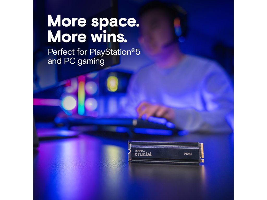 Crucial P510 2TB PCIe Gen5 NVMe 2280 M.2 SSD with heatsinkVyužijte výkon technologie NVMe s vysokorychlostním SSD Crucial P510