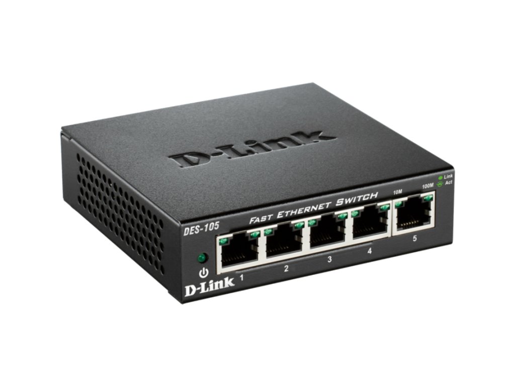 Přepínač D-Link DES-105 Fast Ethernet poskytuje pro SOHO a SMB cenově výhodný způsob, jak vytvořit malou síť a připojit počítače, bezdrátové přístupové body, IP kamery, síťové tiskárny a další ethernetová zařízení rychle a snadno bez složité konfigurace. Tento přepínač je dodáván s 5 porty Fast Ethernet s funkcí automatického snímání pro detekci maximální rychlosti připojených zařízení, což vám umožní provozovat vaši síť s nejlepším možným výkonem. Díky designu bez ventilátoru je tento přepínač zcela tichý, ideální pro kanceláře, knihovny nebo zasedací místnosti.